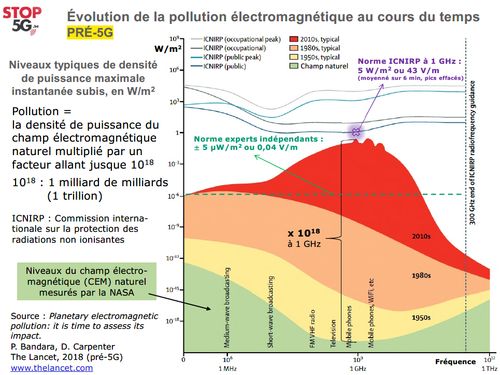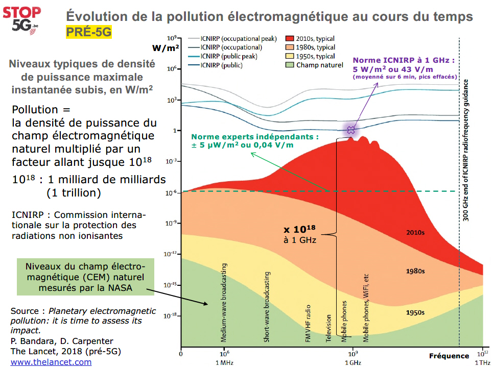 Des milliers d'études scientifiques de tous types* ont mis en évidence les risques sanitaires que nous font courir l'exposition croissante à la pollution électromagnétique que nous subissons à tout moment, liée à l’expansion sans limite de l’utilisation de l’électricité et des techniques de communication sans fil, une évolution facilitée par des normes de protection qui ne sont établies que pour satisfaire les intérêts du lobby des télécoms.